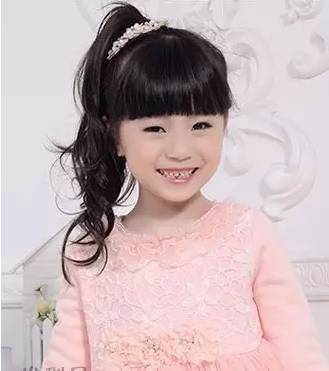 这款侧扎马尾辫也是俏皮可爱,为宝贝们烫起小卷发,高高扎起来,水晶发饰点缀,亮眼小女人范十足,乖乖的厚刘海凸显灵动的大眼睛。
