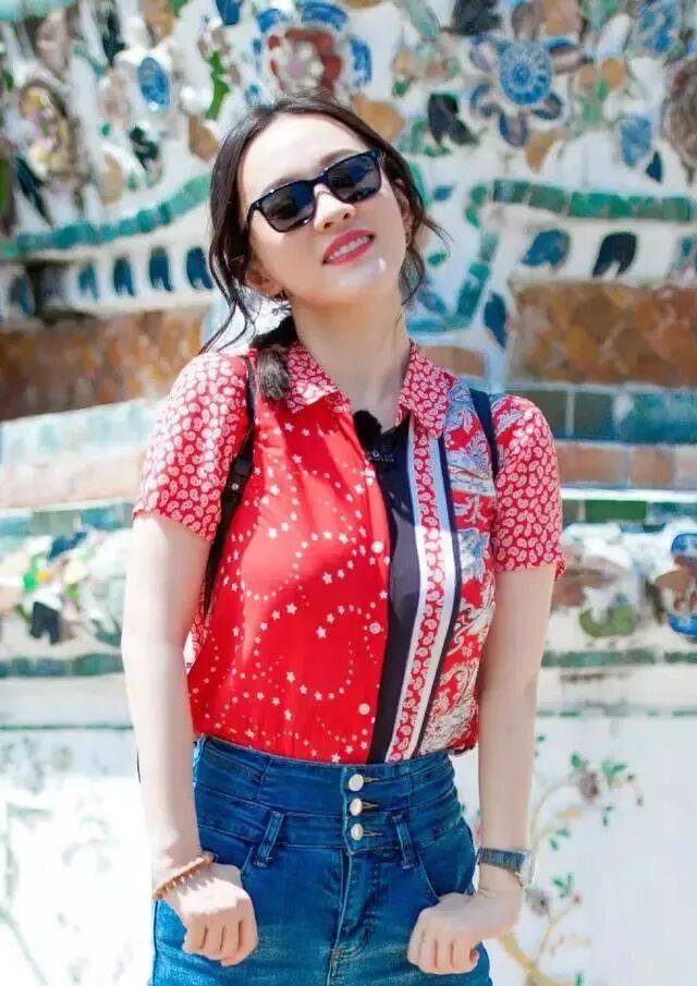 《妻子3》霍思燕游泰国,印花衬衫搭牛仔,39岁了美得像个小姑娘