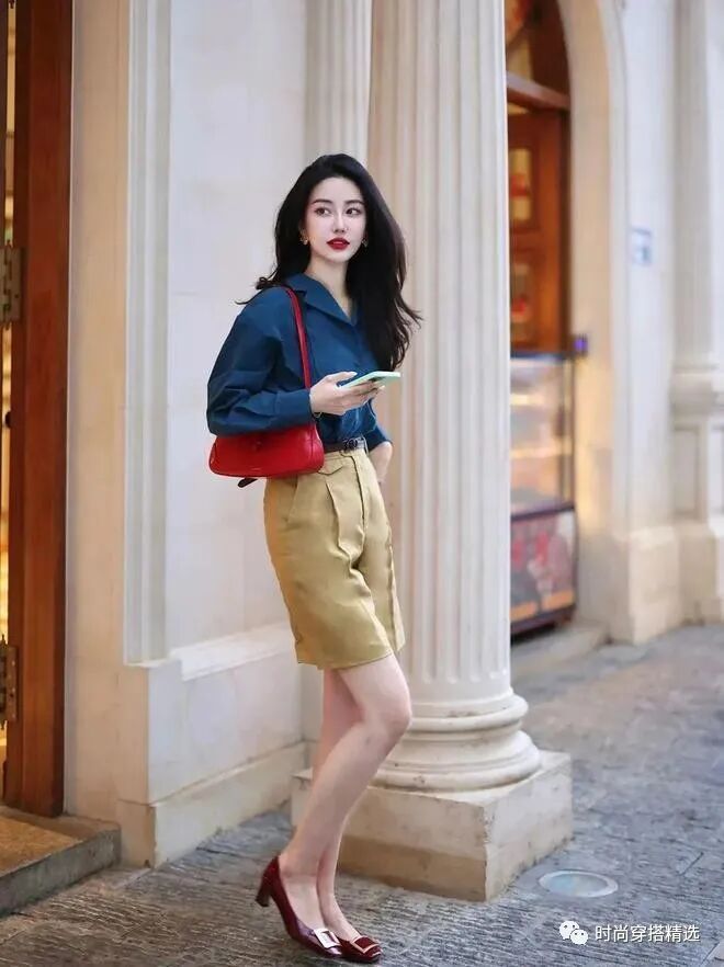 衬衫搭配中裤深蓝衬衫搭配卡其色裤子,为整体造型注入了一丝深邃和稳重。为增添活力,选择红色的鞋子和包包,巧妙地打出鲜明的色彩对比。展现你对色彩的敏锐感知和大胆尝试。