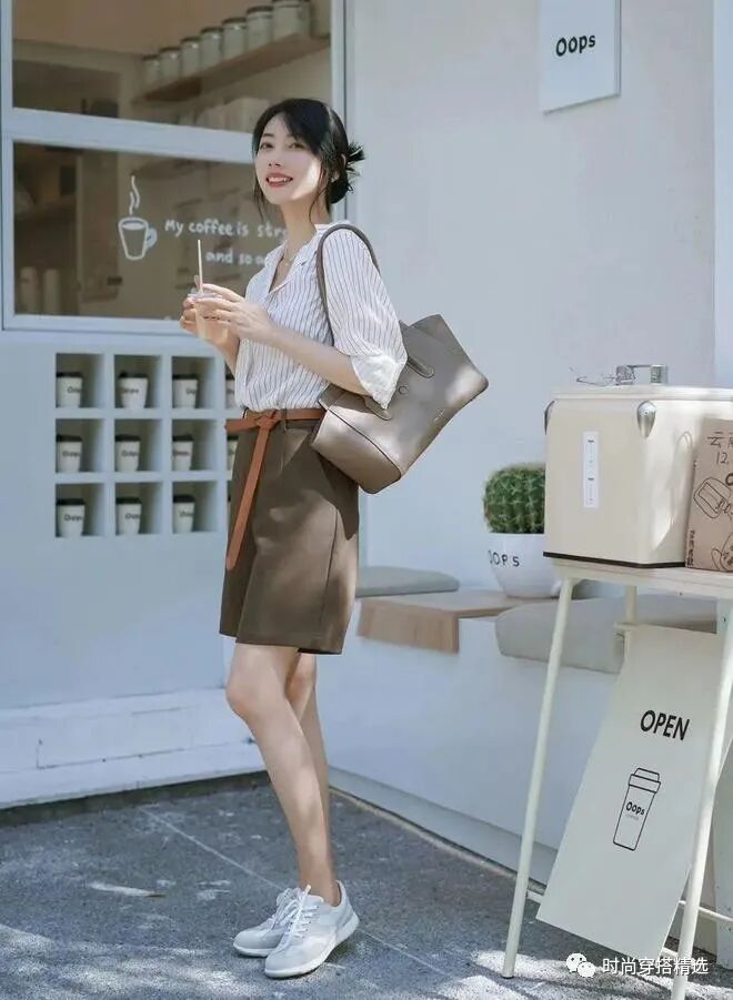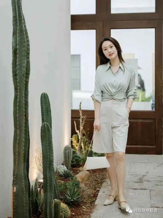 牛油果绿色给人带来活力和活力,而白色中裤则增添了整体的轻盈感。这种搭配似乎把大自然的清新氛围带入了你的穿着中,展现了你对自然和舒适的向往。
