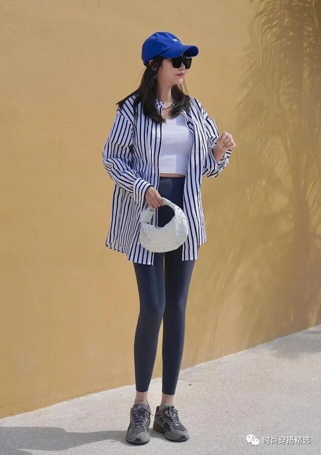 叠穿衬衫没有太大的难度,只要记住“一繁一简”就足够了,都采用纯色的话,容易显得太单调。像这种白色背心和条纹衬衫的搭配,就非常显身材,既能遮住赘肉,又可以勾勒身材线条一举两得;建议在下装的搭配上,要么选择短裤,要么选择勾勒腿部轮廓的小脚裤,可以美化身材线条。