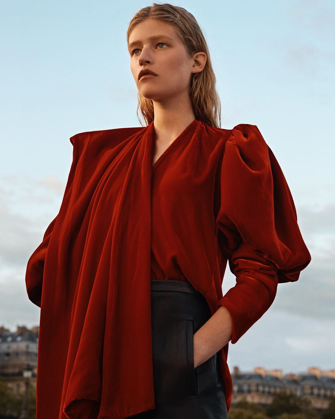 Tip 1:衬衫款式改良的泡泡袖上装+高腰高腰西裤+尖头高跟鞋营造出的绝对是王炸气场。相比起普通衬衫来说泡泡袖衬衣像是拥有了「柔美的垫肩」,上宽必下窄,搭配一条高腰西裤能避免整个人埋在衣服中,同时能重塑比例,不经意间拥有蚂蚁腰。instagram @khaite_ny