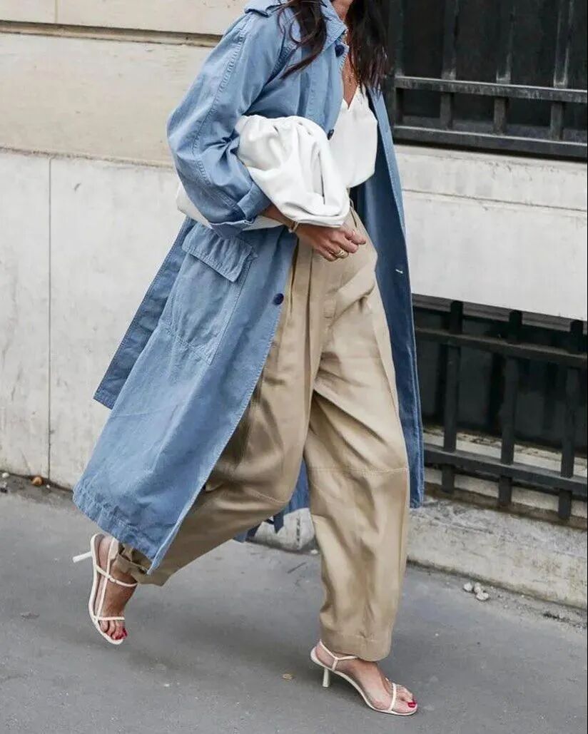 有腿粗苦恼的姐妹就可以选择宽松一点的直筒裤或阔腿裤,能够修饰腿部线条,与风衣组合起来大气又时尚。