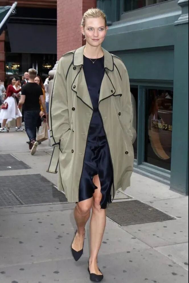 这种长度的风衣稍有不慎就是踩雷!比如刚好卡在膝盖上,把腿长分割五五分割,身材比例不好或腰线低的就会把你的小腿显得巨短。