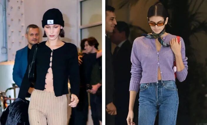 比如之前刘雯在微博上晒了一组自己穿针织开衫的照片,裹身的款式、系上的扣子,都和我们以往对于开衫的概念完全不同了。