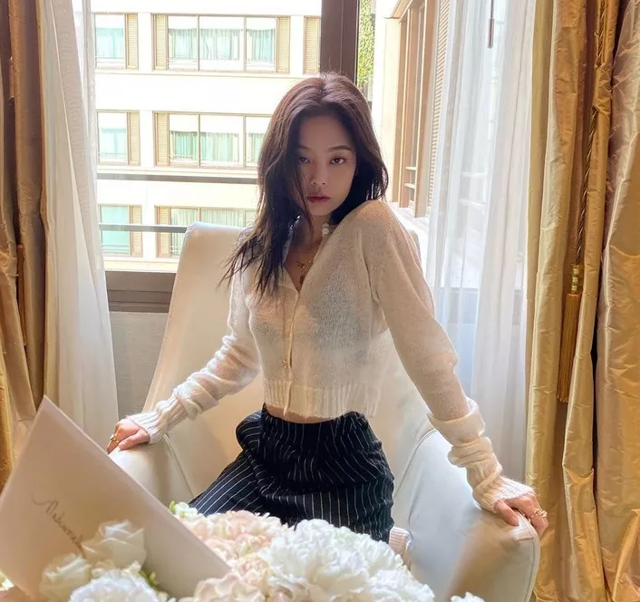 Jennie对针织衫的爱,从夏天一直延续到冬天。
