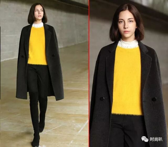 选择黑色的大衣配上亮色的内搭也是不错的选择哦,比如黄色、红色、茱萸粉这些颜色饱和度比较高的颜色和黑色的重叠,照样穿出吸晴的美丽,亮色的内搭在视觉上更有冲击里,容易将让的眼神吸引。更让你成全全场瞩目的焦点哦。
