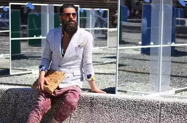 ↑自己伙伴自己挺的概念,同时也示范了最简单驾驭花俏上装的方式:当你有件花俏的上装时,那在其他部位就尽可能的维持干净,就算是花俏配件的选用也是以小面积点到为止即可。最后不管什么版型,在夏末都请你保持有两件以上心仪的白裤(跟白T道理相同)。4多元的配件