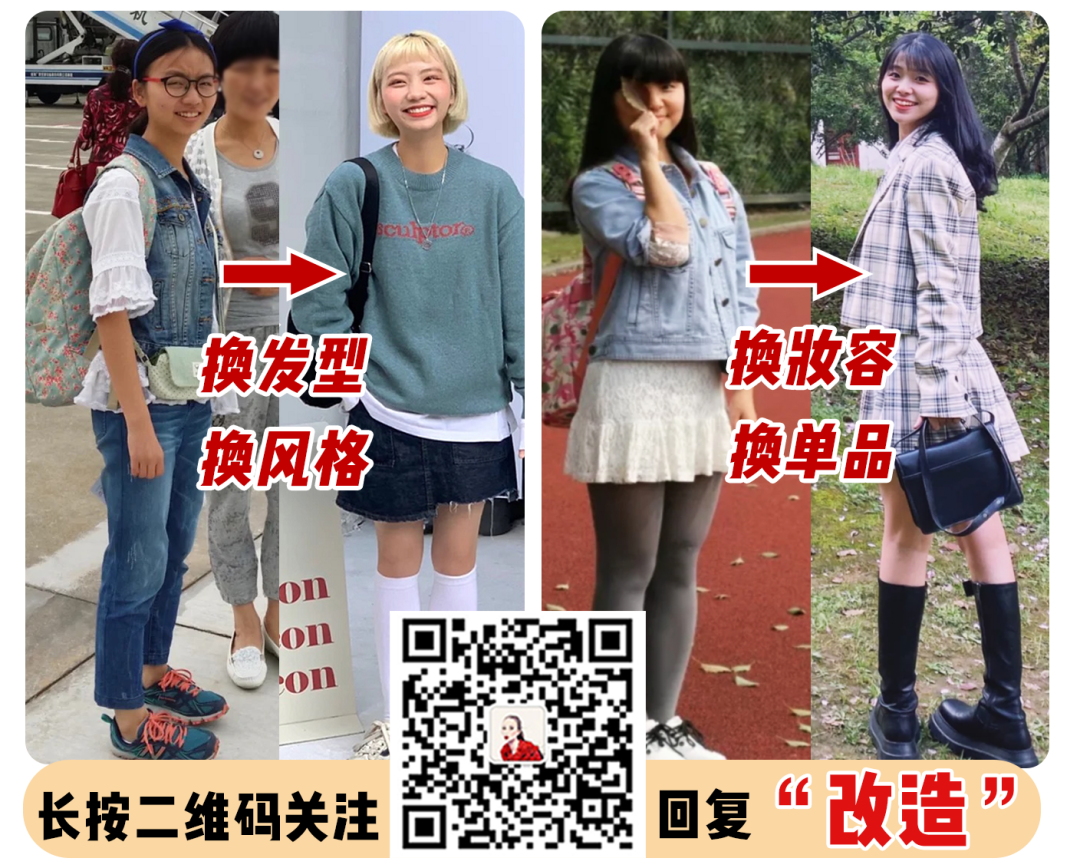 这里感兴趣的话可以关注阿花回复【改造】,她能根据读者投稿给出穿搭和变美建议,帮读者逆袭?