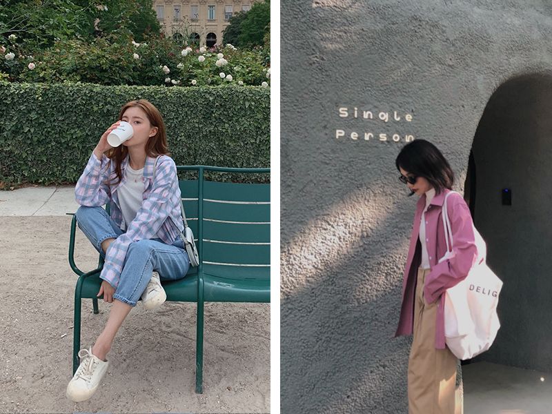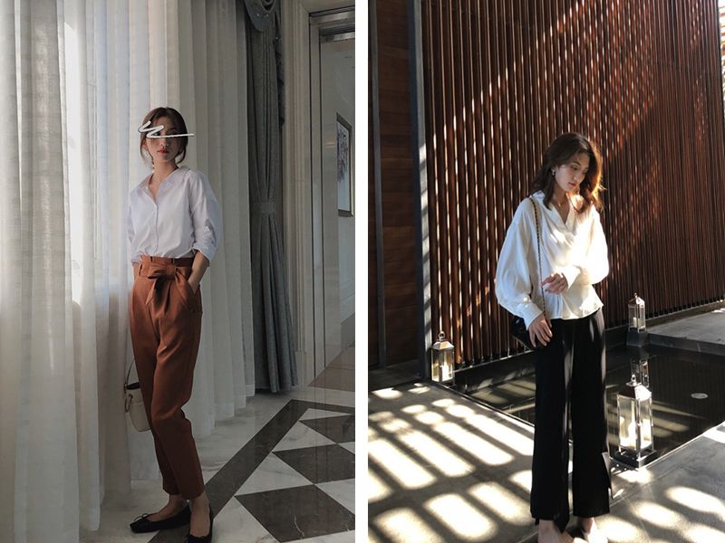 衬衫单穿也是一种时髦,适合搭阔腿裤,内塞或者不塞都很随性,还显高。
