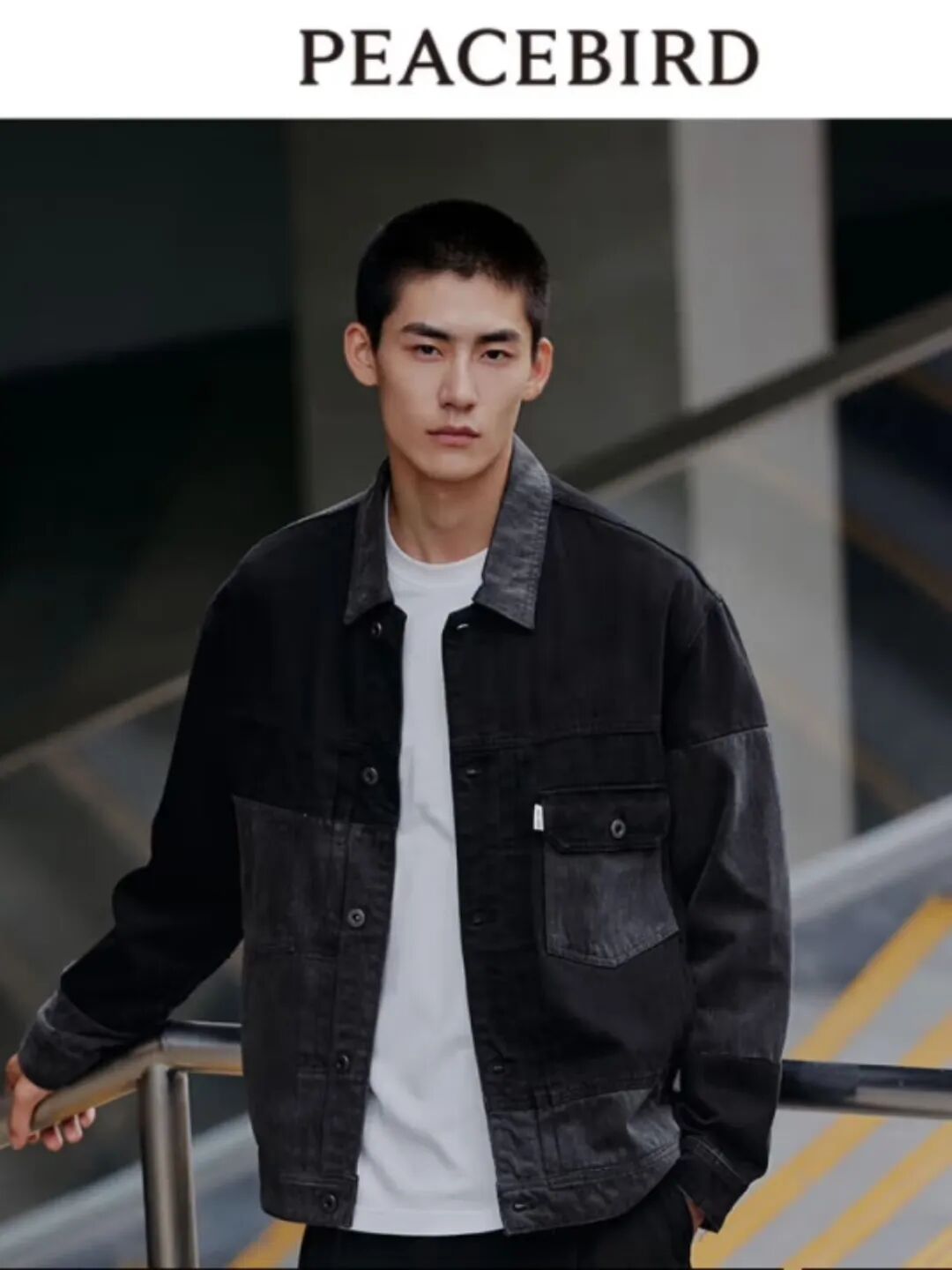太平鸟拼色牛仔夹克外套