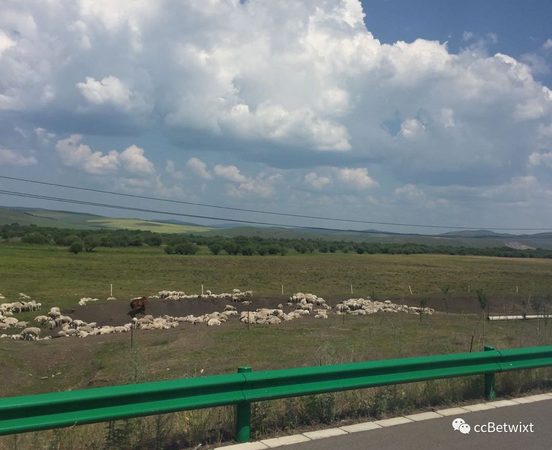 接我们的司机姓任,辽宁人,老婆是海拉尔人,平时开滴滴,有人要包车就开旅游。这位大哥实在是个不错的人,笑起来很阳光,基本上有求必应(路上我们经过一个收费景区,他还自掏腰包陪我进去了)。我提出的路线是穿越草原去莫日格勒河,像老舍那样,“只要方向不错,怎么走都可以”,结果今年政府为了保护草原,把往年的越野路线给修了一条水泥路,路两边建了铁丝网,禁止汽车随意穿越草原。好家伙,这么多年我都没来,今年我来了就给我整出个这玩意。