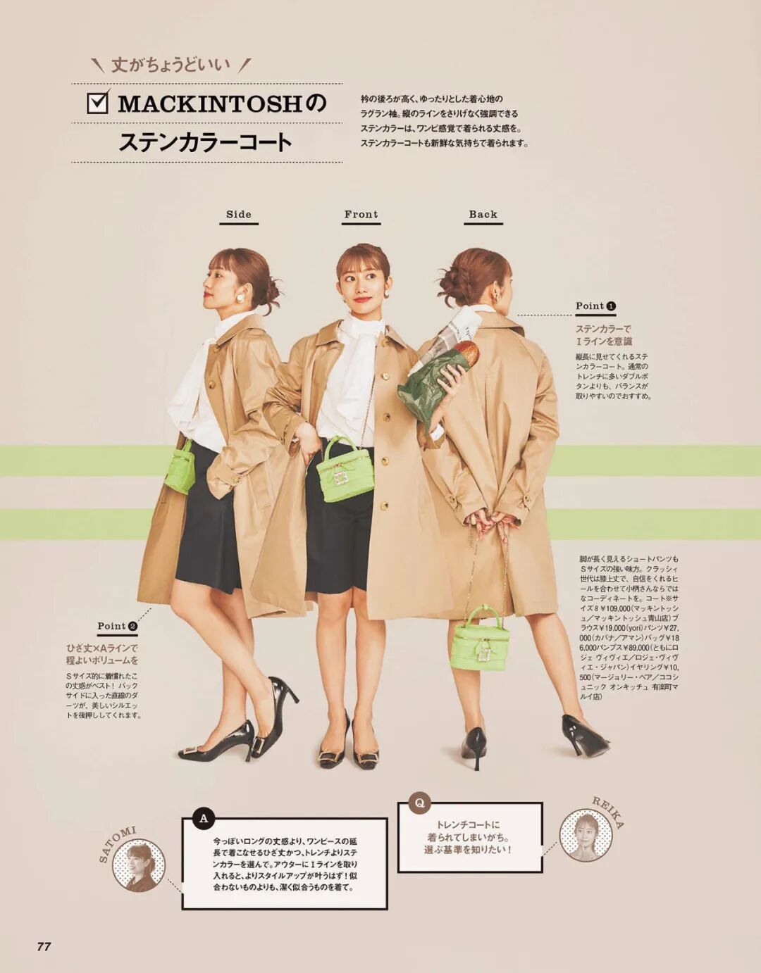 职场上我们又该如何穿搭呢?过膝风衣必不可少。风衣的款式和长度真的是多种多样。该去如何选择呢?首先我们最好不要选择OVER SIZE款式或超长的风衣外套。小个子女孩穿上去,会有一种偷穿别人衣服的感觉。选择修身(最好是高腰身的款式)长度在膝盖和小腿肚的中间是最佳选择!露出细细的小腿。