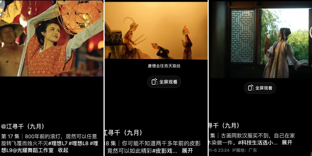 此前就曾登上过涨粉榜的@江寻千(九月)原本是一位游戏原画师,因之前居家时将自己制作美食的视频发布到网上而意外走红,由此开启了自媒体博主的生涯。起初,九月只是发布一些精致的美食制作视频。考究的画面、岁月静好的氛围,加之她姣好的面容和温柔的气质,让其作品看起来治愈且赏心悦目,账号也因此受到了诸多关注。此后,九月又开始在作品中传承非遗文化,如用菠菜染布做马面裙、制作皮影、制作可以随意翻转而烛火不灭的灯笼、做苗族银帽……视频中,她不仅无所不能,更是将不同种类的非遗文化以一种唯美、鼓舞人心的方式传递给用户,由此收获了更多喜爱。@江寻千(九月) 抖音视频截图