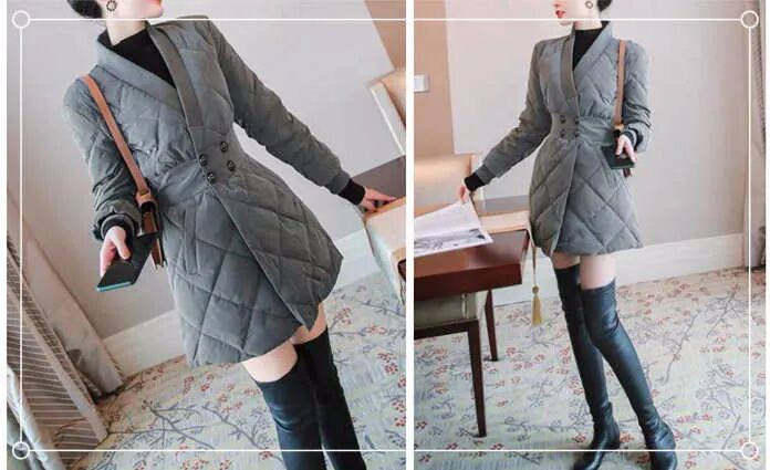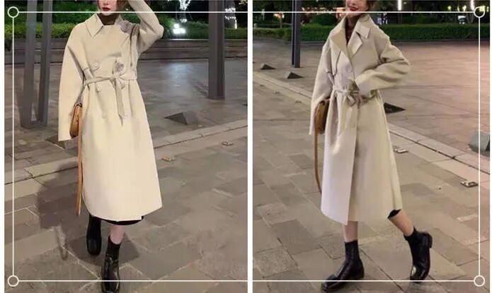 不一定只有把双腿都露出来才能显腿长,其实穿着外套也可以给人修长双腿的视觉感哦。这款浅色系的收腰系带中长外套系上腰带后更加时尚,同时也显得下半身特别修长,给人大长腿的感觉哦。内搭可选择黑色的高领连衣中长裙,再配上黑色短靴,整体显得更有气场。