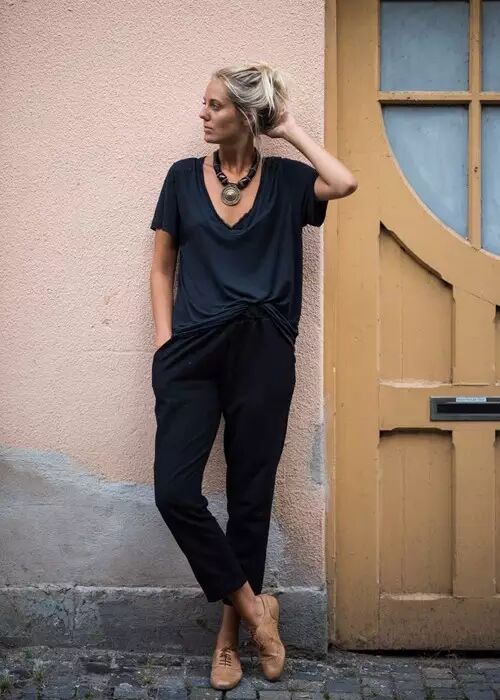 ▲清凉的吊带连体裤舒适方便,V领款式更加sexy,搭配同样舒适的勃肯鞋,休闲又chic,要是你也有一头博眼球的秀发,整体造型简直了。