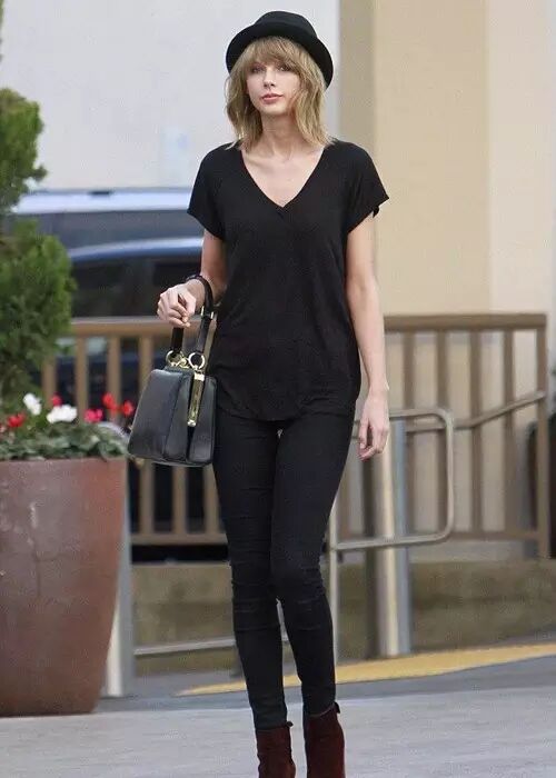 ▲黑色显瘦又不挑人,看“霉霉”泰勒·斯外芙特为你示范个性一身黑,就算胸小也不怕,靠抢眼的配饰转移视线吧。