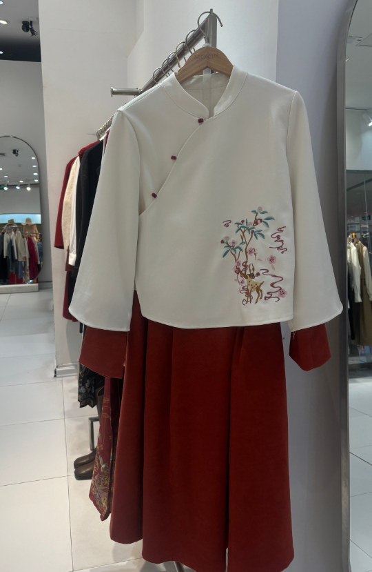 “我去年偶然在某社交平台了解到‘新中式’穿搭,被马面裙的造型和设计吸引。今年春节期间,我到市区某服装店购买了一条马面裙,还顺带买了一件盘扣款式的外套。”90后林女士告诉记者,她的职业是一名老师,春季开学第一天,她就穿着马面裙搭配白衬衫上班了。