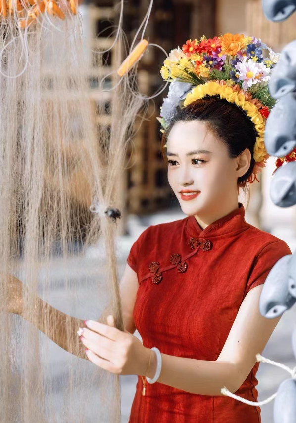 “我认为当地的蟳埔文化和海陵岛的疍家文化有相通之处,而且海陵岛的景色也很美,因此我决定把文化带回家乡。如今来到现场体验,或在网上预订的市民游客越来越多,高峰时期我们一天可接待60多位客人。”林女士介绍,店内有多种色系的簪花围,同时能提供传统渔民服、马面裙、清汉服、“新中式”旗袍等服饰,供顾客挑选。