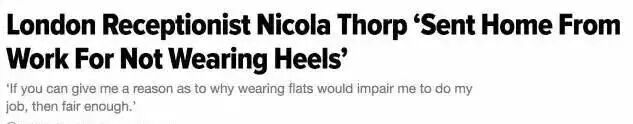 而此前PwC伦敦总部一名前台实习生Nicola,只是没有按要求穿2-4英寸高的高跟鞋来上班,到公司第一天就被走人。