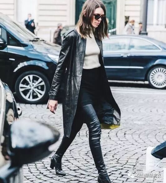 过膝的长款皮风衣,更是具有超强气场,大牌范儿十足。全身同色的搭配也是近年来非常流行的,永远不会出错!不过也可以像博主这样,拿一只特色包包来点缀全身look增加时髦指数哦。