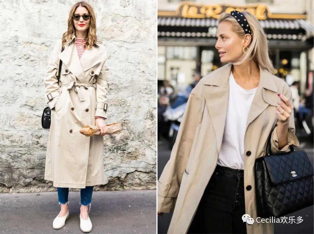 比如西装▲或风衣▼已经带来大面积的干练,内搭就不必衬衫那么刻板,配T恤或开衫更舒适时髦~