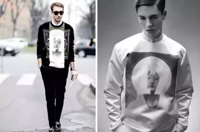 除了纯色或者是字母图案的清新卫衣,大图案更吸引人,虽然选不好图案很容易变成非主流,并没有那么好hold住,但穿上一定备受瞩目。