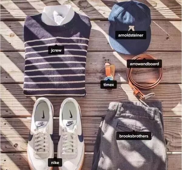 ▼条纹、棒球帽和小白鞋都能增加休闲感