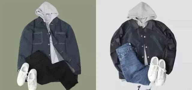 ▼作为内搭,连帽灰色卫衣是运用最广泛的款式。连帽卫衣比较街头风,所以昨天也推荐了用连帽卫衣搭配教练夹克是最佳方案。