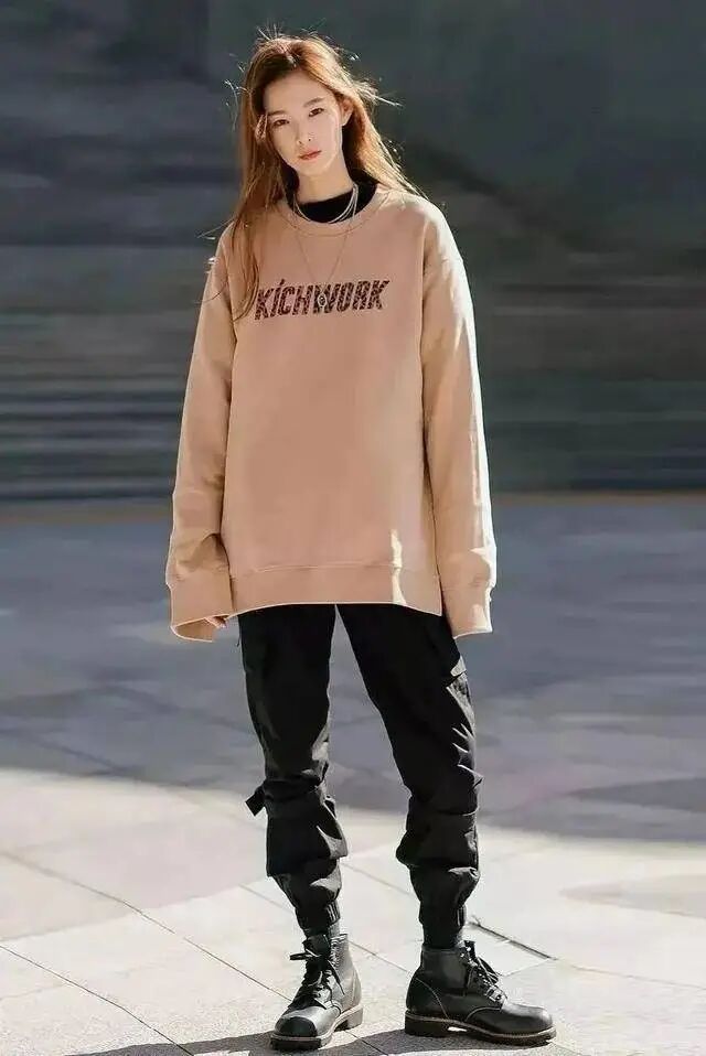 搭配时,可以根据个人喜好和场合的需要,选择不同款式的上衣,如宽松的卫衣、简洁的白色T恤或是正式的西装外套,都能与小黑裤和马丁靴形成和谐统一的整体风格,展现出春季穿搭的多样性和层次感。这种灵活多变的搭配方式,无疑为春季的街头穿搭提供了无限的可能性,让你在舒适与时尚之间自由切换,随时随地展现个性与魅力。