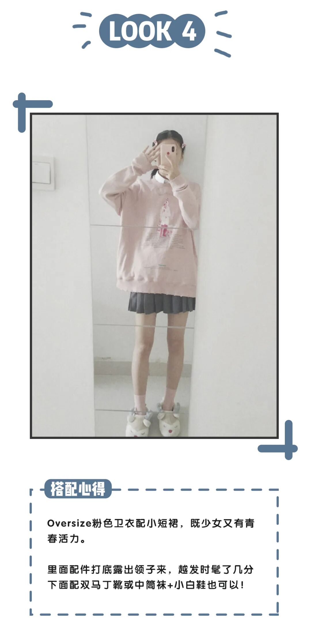 意外好看。再加上卫衣和袜子,半裙和鞋子,上下呼应的颜色,让一身LOOK更协调了些~粉嫩粉嫩的一套搭配,在春天穿上感觉桃花运都旺了好多