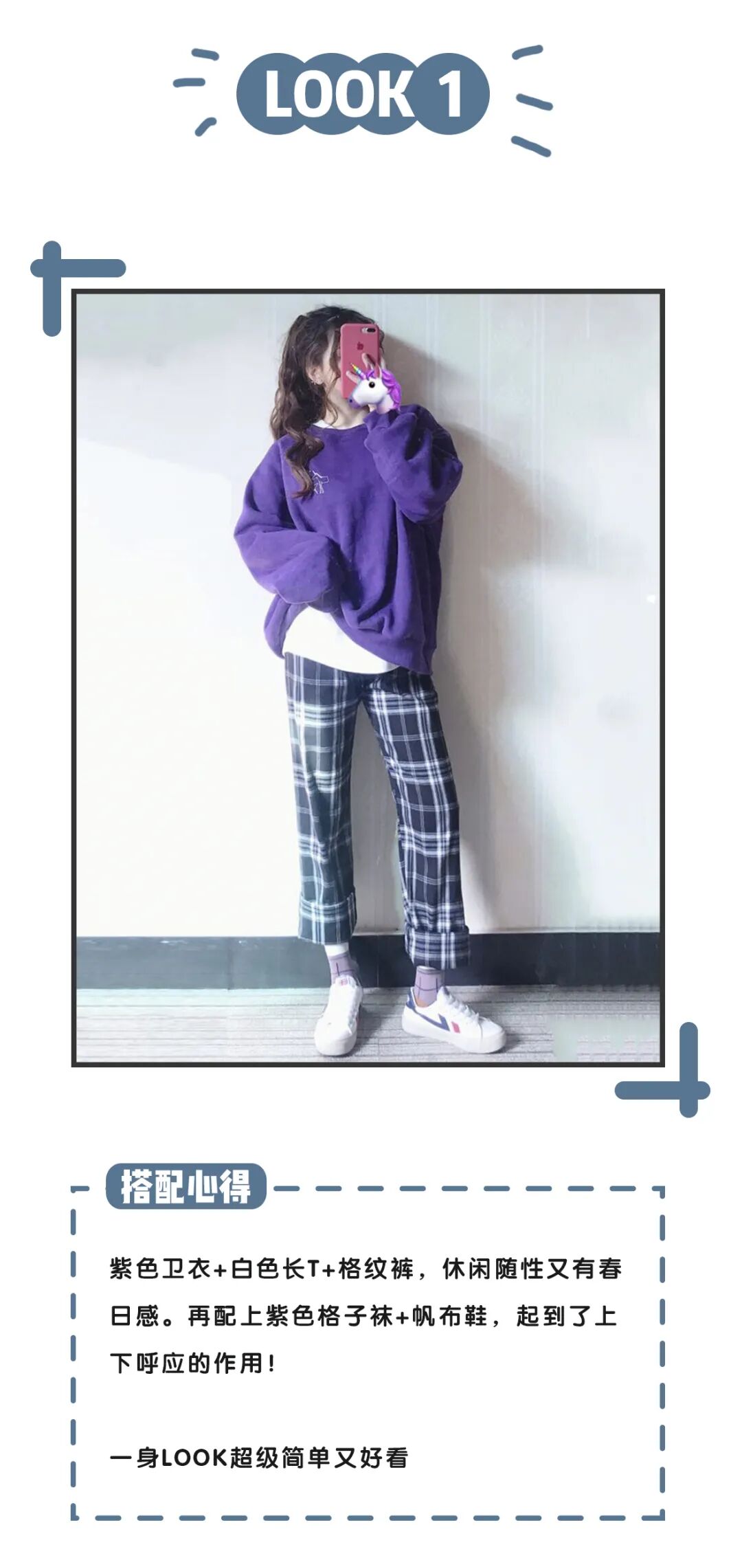「紫+白」,这样的搭配更日常也不容易出错~