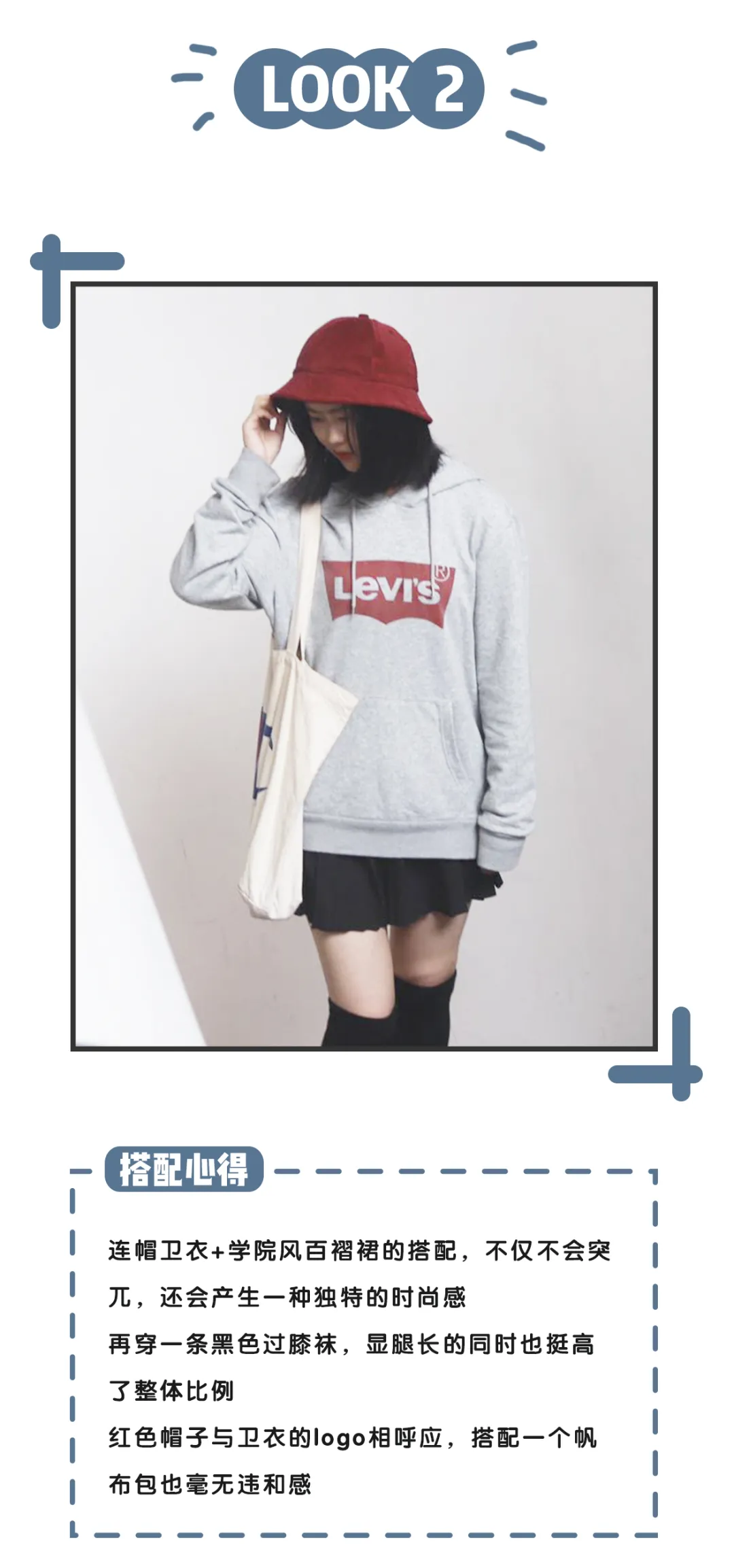 卫衣+短裙+长筒袜这一组搭配,特别适合学生党们,我觉得上班族这么穿的话,会过于学生气了些。还有腿粗的集美们,也不要轻易尝试了