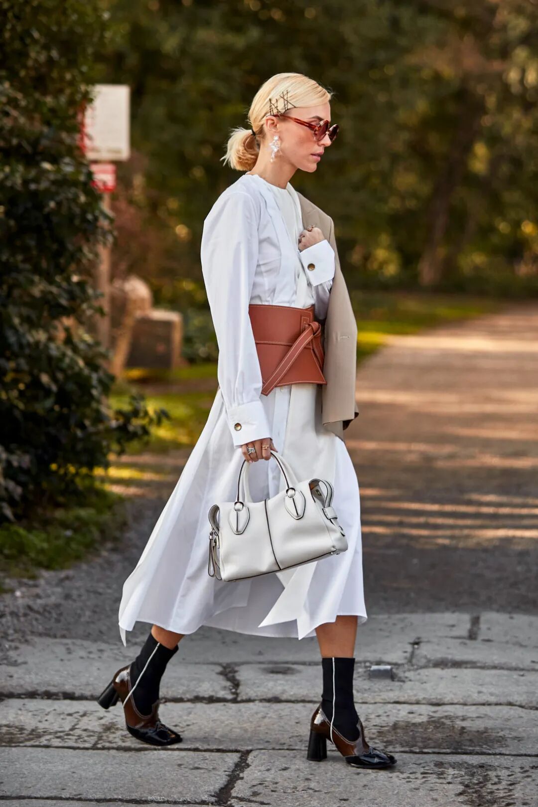 /// 老爹鞋+裙子极具运动风的老爹鞋撞上柔美的裙子,休闲之余还有几分洒脱,毫无违和感,尽显你的时尚态度,是运动酷甜女孩的正确打开方式。极具优雅气场的尖头鞋和裙子简直就是天生一对,不论怎么变换款式都能让穿着者看起来精致有魅力!