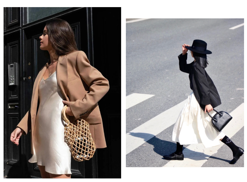 谁说春天不能穿吊带裙,内搭一件打底衫,性感吊带裙秒变法式优雅风格,轻松实现一条吊带裙穿三季~
