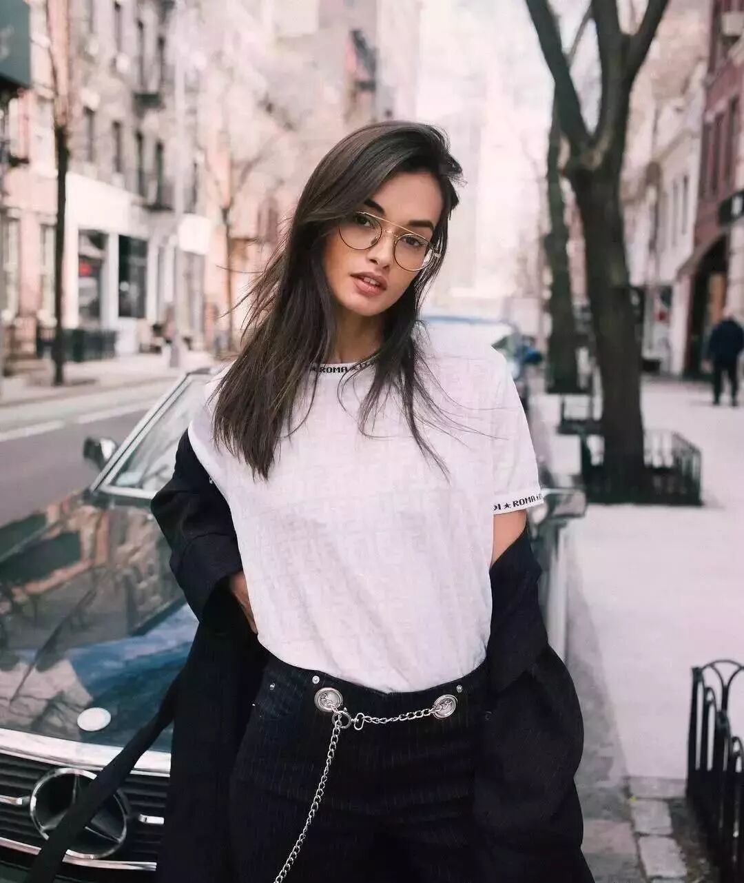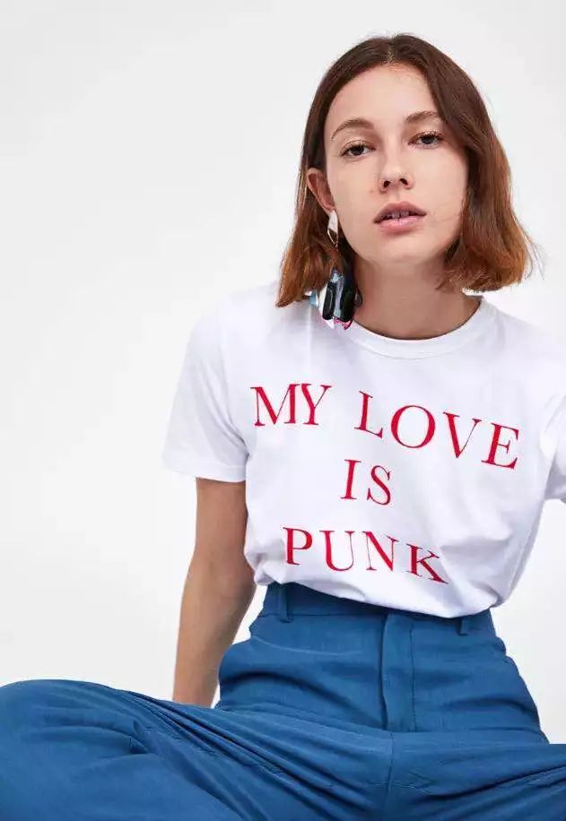 白T恤上最忌讳一些奇奇怪怪的大印花和LOW感十足的字母,如果想穿出高级感,就请远离彩色字母和大面积印花图案。