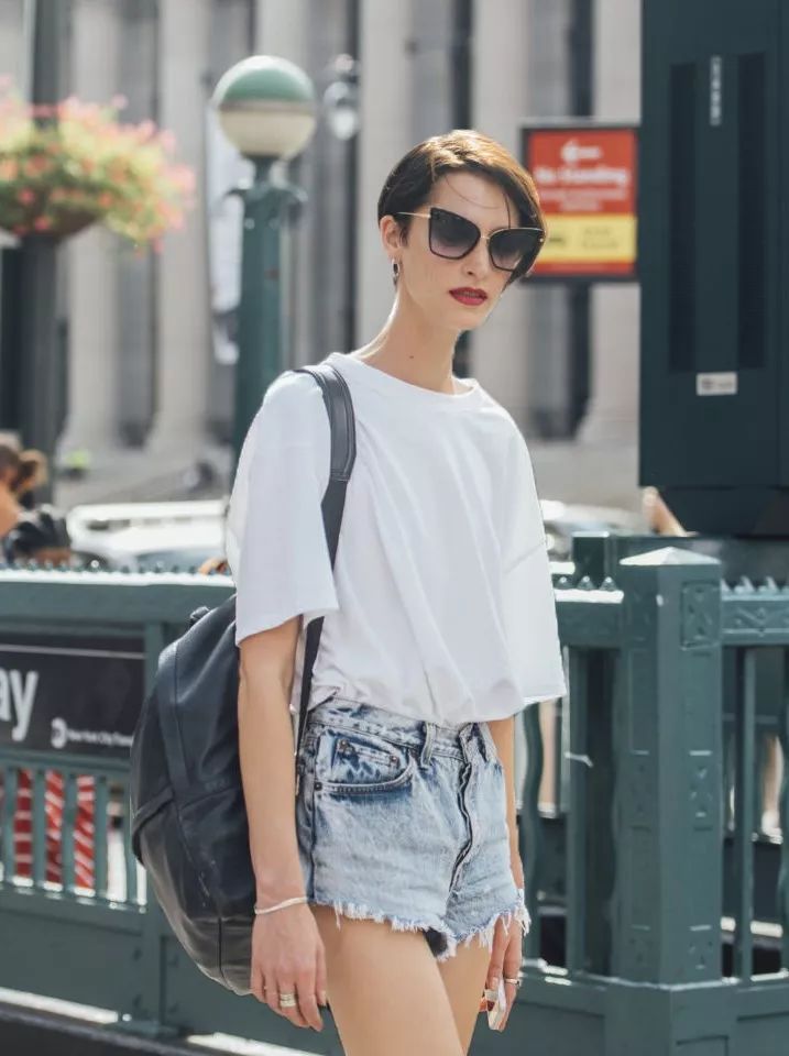 所以如果你的身材没有那么完美,就记得选择袖子相对长一些、袖口宽松的白T,更能掩盖身材上的小缺点。