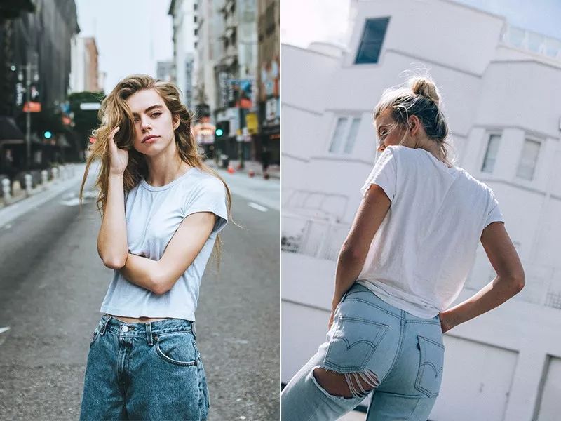 选择白T一定要选择纯度比较高的白色,那些偏黄或者发黄的白T,会让人显得很廉价,还是趁早舍弃吧。