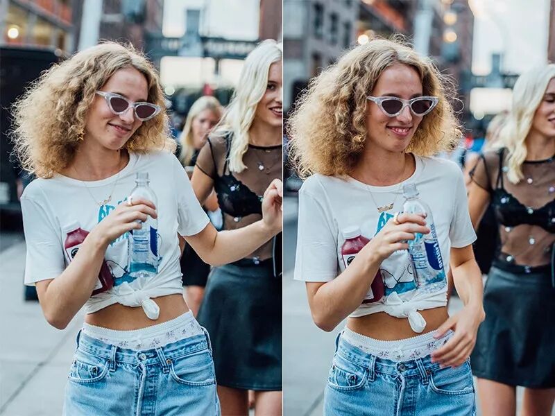 同款白T,左边塞一点留一点,是不是明显就比右边规规矩矩全塞,看起来更随意呢?