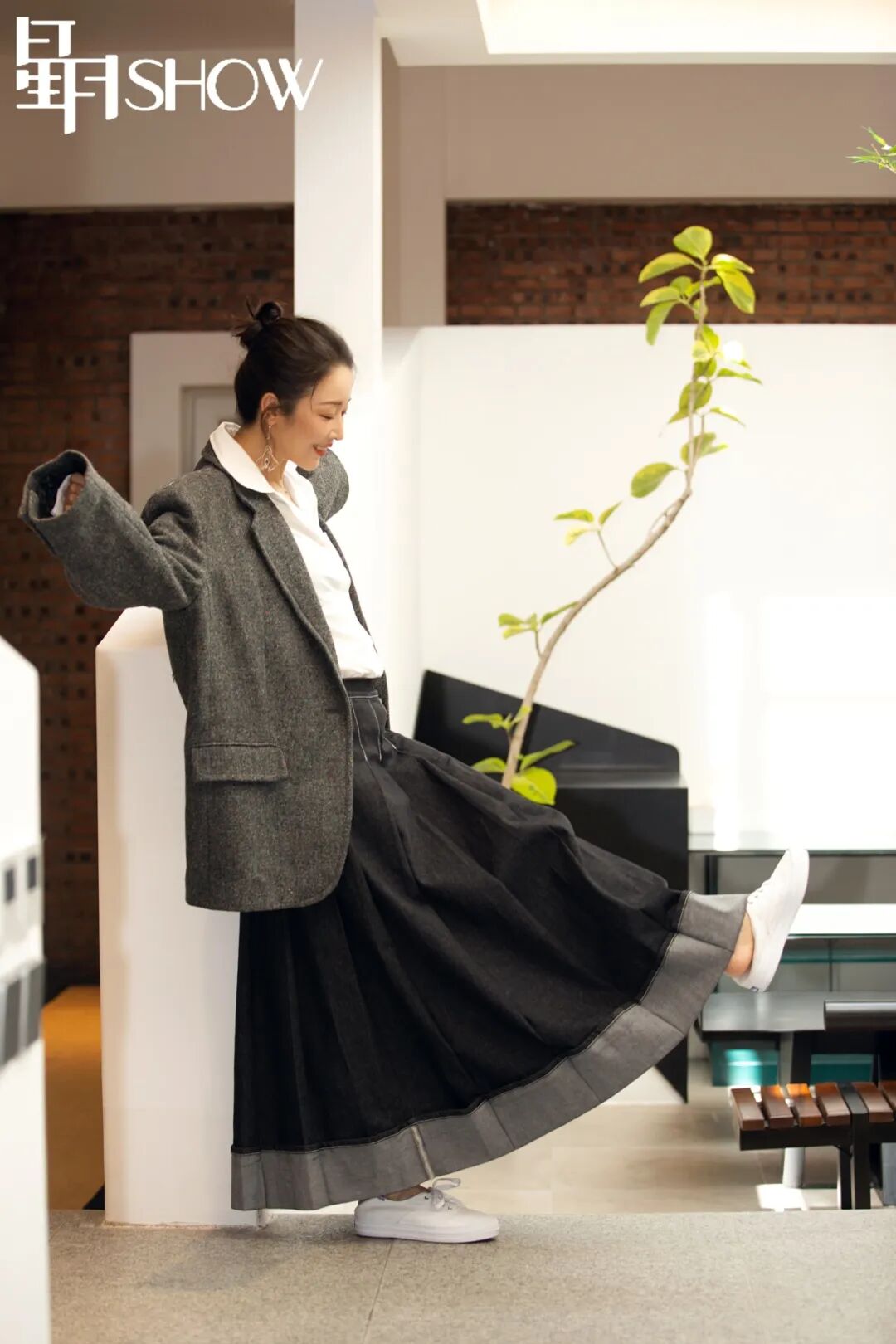 年轻时,孙悦喜欢穿高跟鞋、皮靴和牛仔裤,怎么都不觉得累不觉得热,现在反而更爱穿舒适的小白鞋。在拍摄杂志时,中间换了好几套look,孙悦始终对小白鞋念念不忘,最后一套服装拍摄终于如愿以偿地换上小白鞋,“小白鞋百搭,无论是这样的纱裙,还是其他衣服,我都可以配小白鞋,它是松弛的一种态度。”