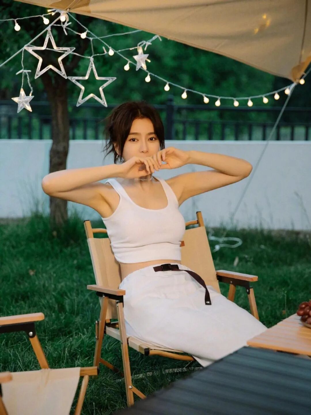 除了连衣裙之外,秦岚的其他穿搭也是值得我们学习的。比如她曾穿过一件短款的白色背心搭配同色系的半身裙,这一身纯白色的搭配看起来非常简洁大方,而且很显气质。背心的纯棉面料舒适度高,即使是单穿也不用担心会刺激皮肤。而大U领的设计则露出了她的锁骨,满足了显瘦的需求。