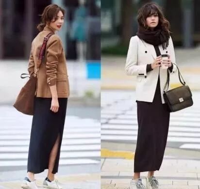 喜欢宽松点的就宽松一点的外套+贴身的半身裙