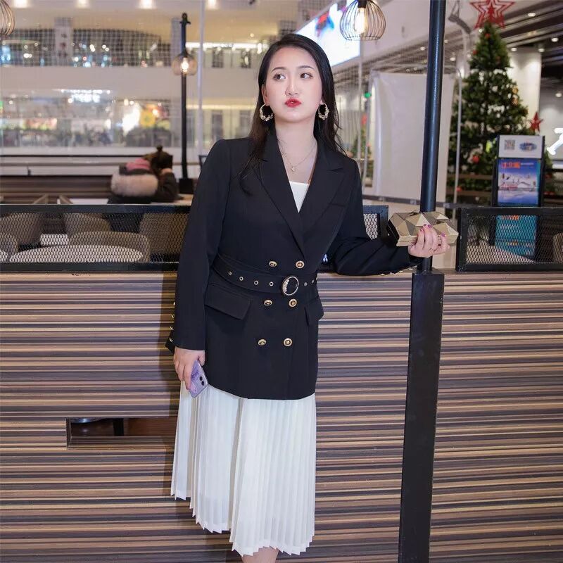 选择修身款西装外套可以将身形显得很瘦,胖妹妹可以选择有腰带的重工款式,不但增加了装饰作用,还更有修身效果哦~