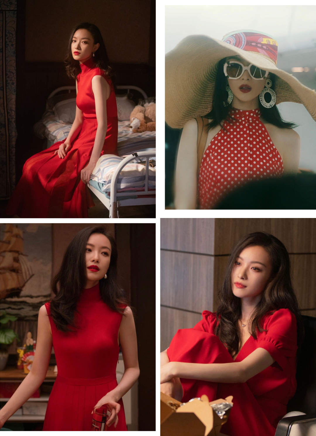 像倪妮在《流金岁月》里就穿了好几次红色连衣裙,浓烈艳丽。