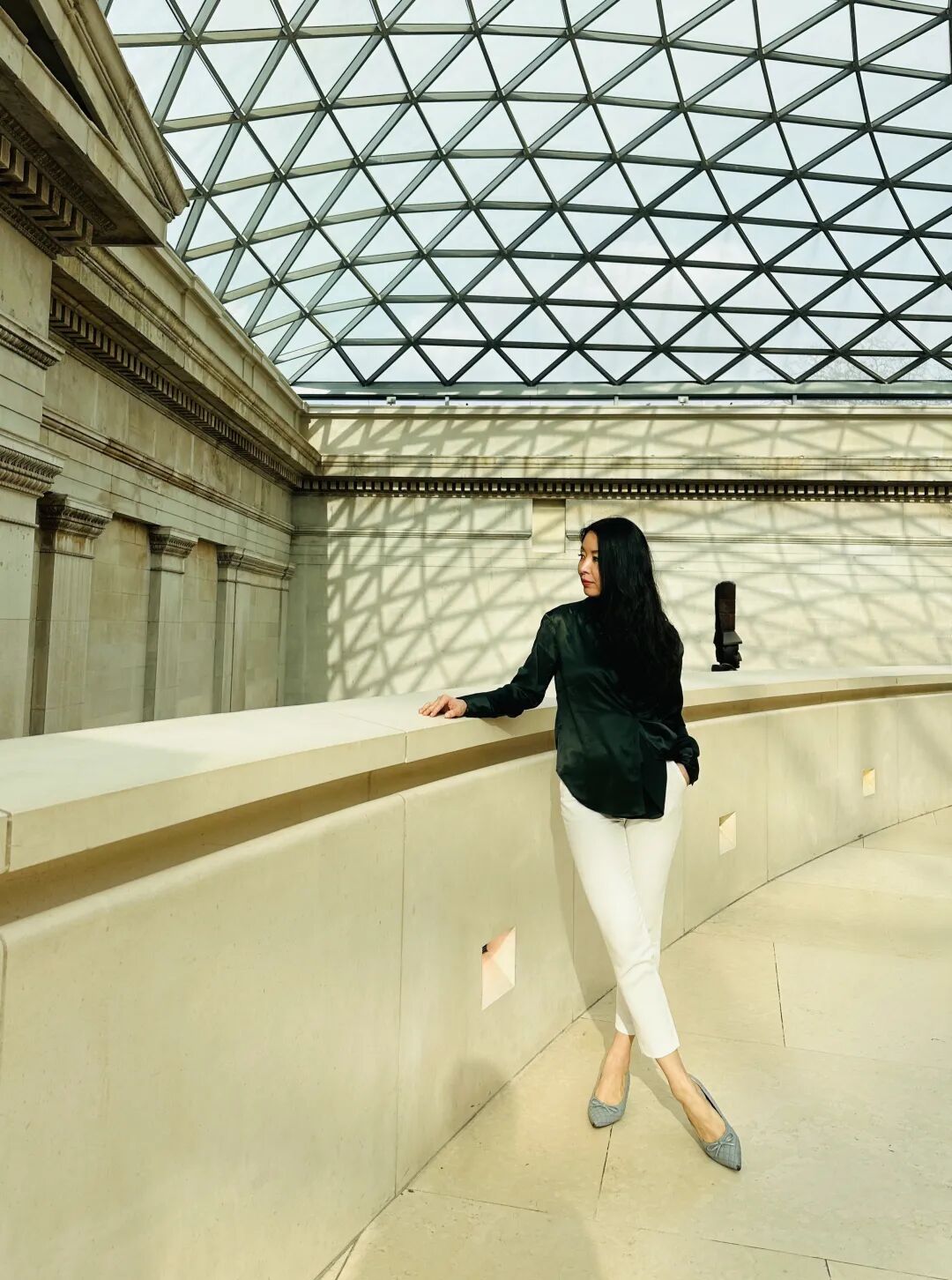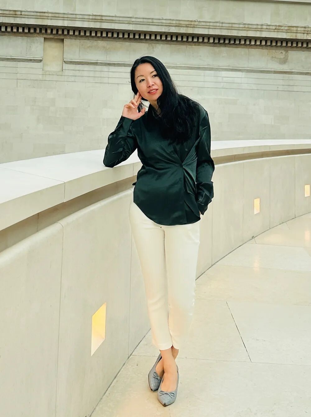 安潇实拍既有干练气质也有松弛感,搭配深色真丝衬衫,精致优雅,气场全开。
