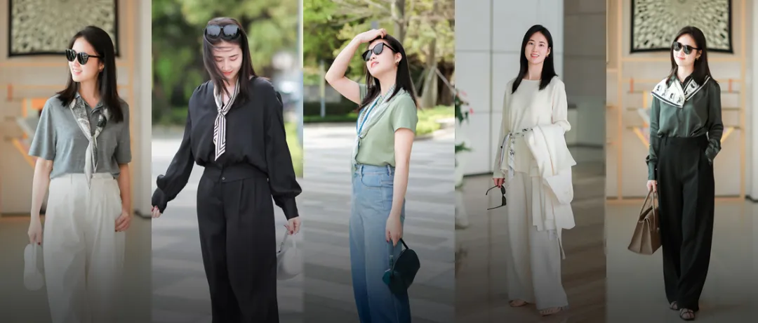 安潇实拍搭配气质丝巾,增添层次感,干练优雅又不失温柔气质。