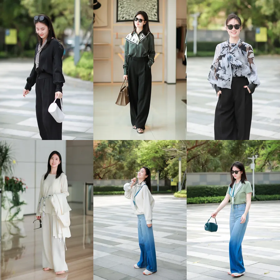 大方干练的真丝衬衫,搭配微阔直筒的利落西裤,显瘦有型,职场女性的气质之选!