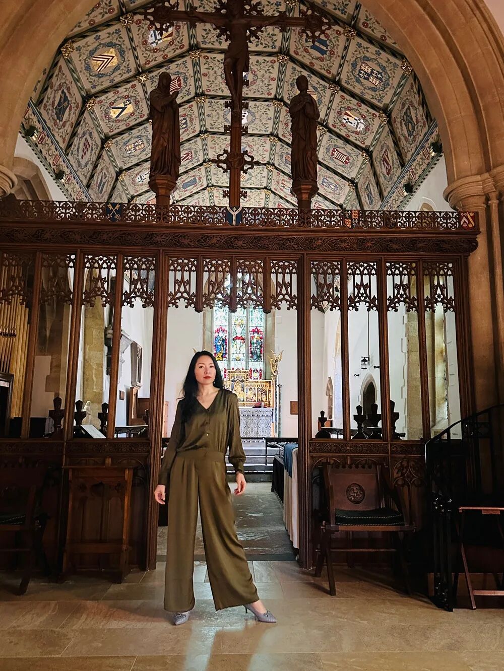 我的自留款,这周我和老R的二人世界旅行就穿了这一套,带点复古感的休闲风,很适合度假穿,墨绿色也有春天的感觉,我太爱了!