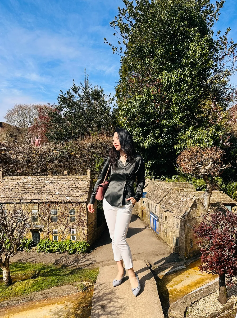 这套真丝衬衫和白色裤子的搭配我也超喜欢,自带复古时髦感。