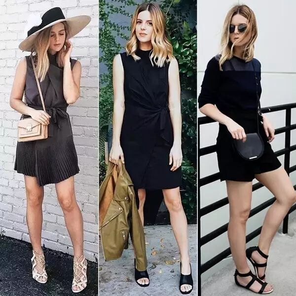深色容易给人沉闷感,所以适当的裸露会更显轻盈。对于微胖的女生来说,V型领口能够很好的拉长脸型,露出性感的锁骨。当然,一字领/U型领也是很适合的。